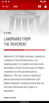 สำรวจสถานที่ประวัติศาสตร์อันเป็นเอกลักษณ์ของบัลติมอร์ด้วยทัวร์แนะนำตนเอง แผนที่ GPS แบบอินเทอร์แอคทีฟจะพาคุณท่องไปในอดีตของเมือง พร้อมรูปภาพประวัติศาสตร์มากมาย พัฒนาโดย Baltimore Heritage Incorporated.
