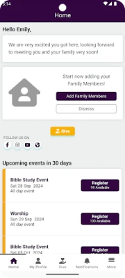 การมีส่วนร่วมในกิจกรรมทางจิตวิญญาณไม่เคยสะดวกสบายเท่านี้มาก่อน แอปพลิเคชันคริสตจักรไซออนแบ๊บติสต์เปิดโอกาสให้คุณลงทะเบียนเข้าร่วมนมัสการหรือกิจกรรมพิเศษต่างๆ ล่วงหน้าได้อย่างง่ายดาย เพื่อสำรองที่นั่งและเตรียมพร้อมสำหรับการรับพร นอกจากนี้ คุณจะได้รับการแจ้งเตือนและประกาศสำคัญแบบเรียลไทม์ส่งตรงถึงอุปกรณ์ของคุณทันที ทำให้คุณไม่พลาดทุกข้อมูลเชิงลึกและคำแนะนำจากคริสตจักร สัมผัสประสบการณ์การเชื่อมโยงกับพระเจ้าและเพื่อนร่วมความเชื่อที่ลึกซึ้งยิ่งขึ้นผ่านเครื่องมือดิจิทัลที่ออกแบบมาเพื่อคุณโดยเฉพาะ